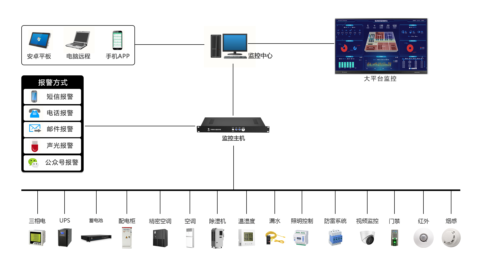 為機房內(nèi)各系統(tǒng)及設(shè)備運行提供高度穩(wěn)定可靠的監(jiān)控信息資源,提供實時數(shù)據(jù)監(jiān)測以及必要的遠(yuǎn)程控制、智能控制。