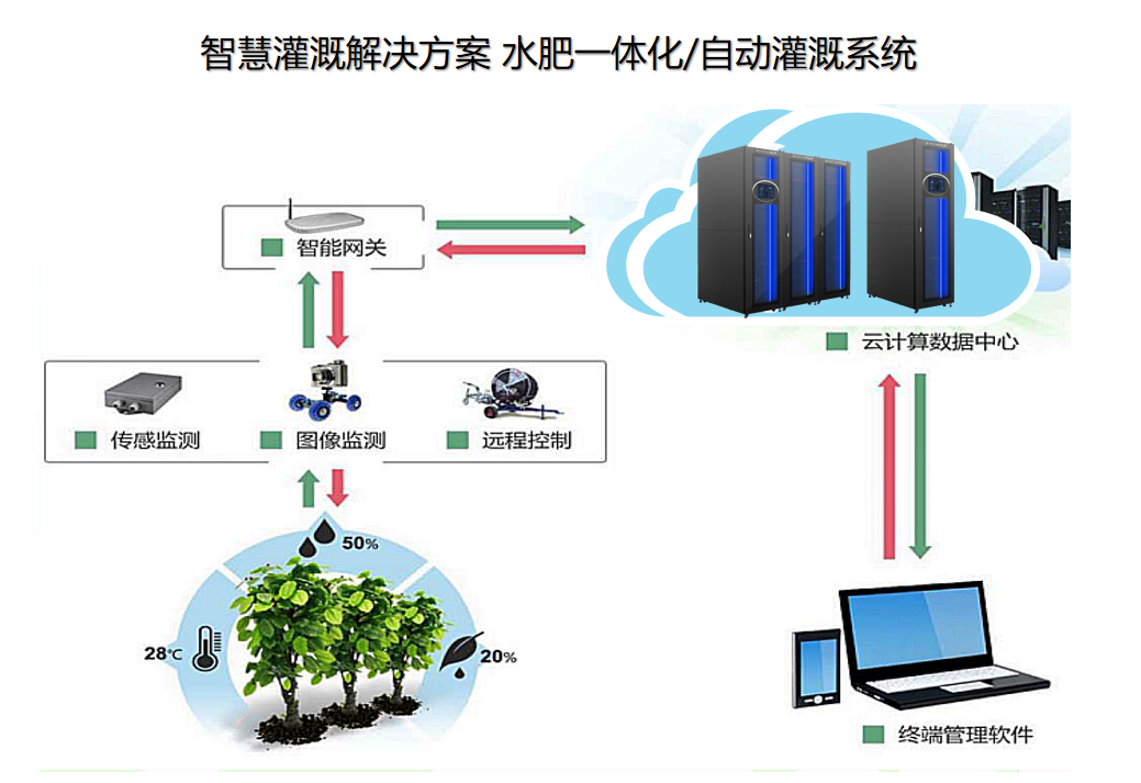 園林環(huán)境及墑情監(jiān)測優(yōu)勢:實現(xiàn)管理人員對園林各個區(qū)域的環(huán)境溫度、濕度、風(fēng)速、光照、土壤水分等參數(shù)進行監(jiān)測;對園林綠化業(yè)務(wù)全流程進行精細化管理,對環(huán)境變化可進行認為干預(yù),減少植物折損率;對園林噴灌用水量進行監(jiān)控,為水資源利用提供有效的數(shù)據(jù)分析支持;根據(jù)土壤墑情及環(huán)境參數(shù)現(xiàn)狀建立用水量及灌溉方法數(shù)學(xué)模型。