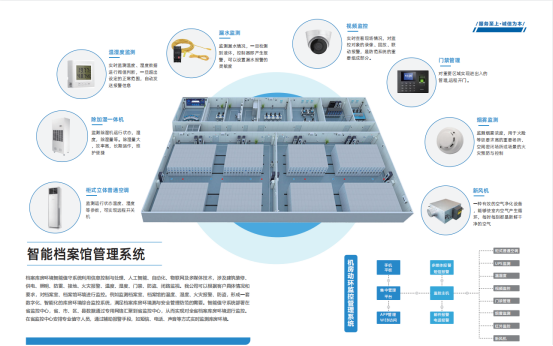 總而言之,檔案庫房內(nèi)溫度過高或過低,濕度太大或太小, 都會影響檔案材料的存放性。因此,必須對檔案庫房的溫濕度進行控制與調(diào)節(jié),智能監(jiān)控系統(tǒng)的建立保障了檔案材料的質(zhì)量,同時又優(yōu)化了人員的維護和工作效率、降低能源消耗,又節(jié)約了運行成本,最大限度地延長檔案的壽命。