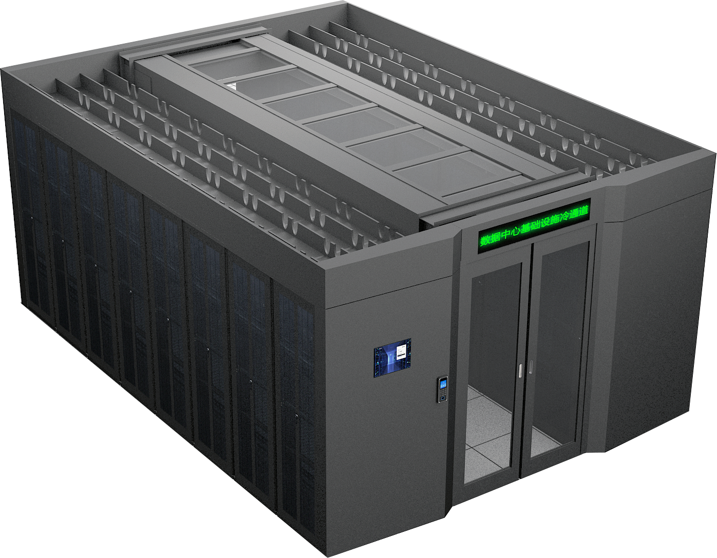 微模塊是由若干個(gè)機(jī)架為單元,包括配電模塊、制冷模塊、高壓直流或UPS模塊、冷通道、監(jiān)控、網(wǎng)絡(luò)、布線等若干個(gè)功能在內(nèi)的獨(dú)立運(yùn)行模塊,該模塊均為工廠預(yù)制,可靈活拆裝、快速部署、方便擴(kuò)容,采用行級(jí)制冷技術(shù),使冷空氣集中與服務(wù)器進(jìn)行熱交換,避免將大部分冷空氣與環(huán)境進(jìn)行熱交換,達(dá)到節(jié)能目的。