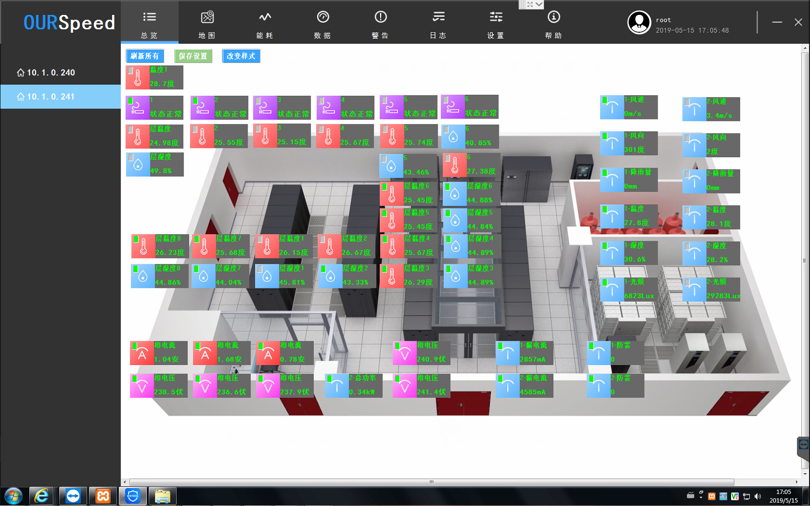 除濕機(jī)遠(yuǎn)程監(jiān)控:實(shí)時(shí)監(jiān)控倉(cāng)庫(kù)內(nèi)除濕機(jī)運(yùn)行狀態(tài),包括功率、風(fēng)速、濕度設(shè)置范圍、開關(guān)機(jī)狀態(tài)、等,保證倉(cāng)庫(kù)正常的濕度范圍,使倉(cāng)庫(kù)存儲(chǔ)的物資在恒濕的環(huán)境下存放。