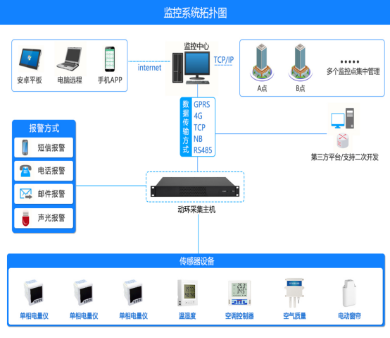 在集中管理平臺(tái)登錄主機(jī)IP,即可實(shí)現(xiàn)對采集設(shè)備的實(shí)時(shí)監(jiān)控,在后臺(tái)對溫濕度進(jìn)行上下閾值的設(shè)置,可以聯(lián)動(dòng)控制空調(diào)、風(fēng)機(jī)等開啟和關(guān)閉,也可單獨(dú)對空調(diào)、風(fēng)機(jī)、燈光等設(shè)備進(jìn)行相關(guān)操作,實(shí)時(shí)監(jiān)測實(shí)時(shí)檢測記錄對應(yīng)氣體的濃度值,如一氧化碳濃度值、空氣含氧量、空氣質(zhì)量等,一旦濃度超標(biāo),立即聯(lián)動(dòng)風(fēng)機(jī)降低氣體濃度,同時(shí)通過聲光、電話、公眾號(hào)、app、短信等方式進(jìn)行報(bào)警。