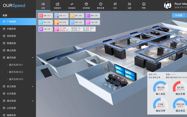 系統(tǒng)可對監(jiān)測到的各項參數(shù)設(shè)定越限閥值(包括上下限、恢復上下限),一旦UPS發(fā)生越限報警或故障,系統(tǒng)將自動切換到相應的監(jiān)控界面,且發(fā)生報警的該項狀態(tài)或參數(shù)會變紅色并閃爍顯示,同時產(chǎn)生報警事件進行記錄存儲并有相應的處理提示,并第一時間發(fā)出手機短信、聲光等對外報警。